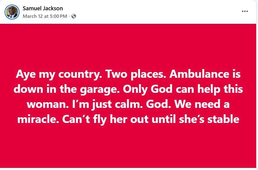 Later, Mr. Jackson confirmed last evening that he used his private car but said only from one facility he needed an ambulance even though his initial post said two: “You pieces of sh**t. I took my wife to the hospital in my Private car at 10:20 on Thursday. Only from Catholic Hospital I needed an ambulance fitted with oxygen in the afternoon!! Damn as**s.”