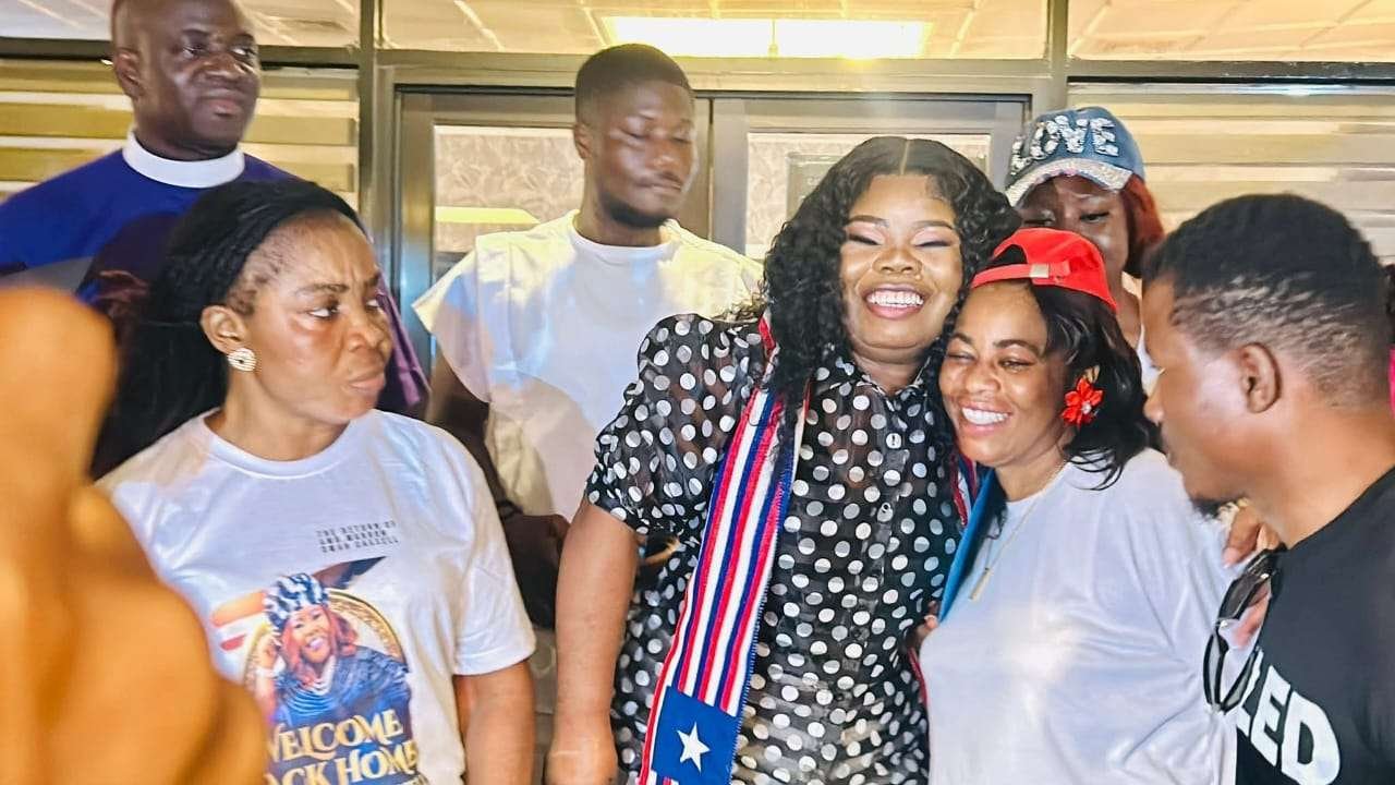 Cassell, one of Liberia’s most influential gospel voices, arrived at Roberts International Airport to cheers from fellow artists, including Minister Maricle Kettor, along with friends, fans, and family members. The gathering marked an emotional homecoming for the artist, whose music has long resonated with Liberians both at home and abroad.