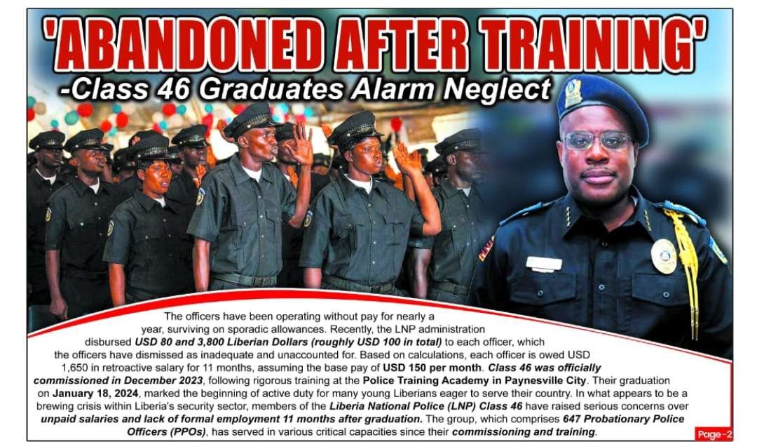 In what appears to be a brewing crisis within Liberia’s security sector, members of the Liberia National Police (LNP) Class 46 have raised serious concerns over unpaid salaries and lack of formal employment recognition 11 months after graduation.