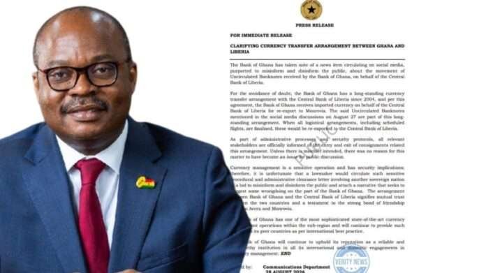 The Ghanaian Central Bank said it has a longstanding currency transfer agreement with Liberia since 2004, and per this agreement, it receives imported currency on behalf of the Central Bank of Liberia for re-export to Monrovia.