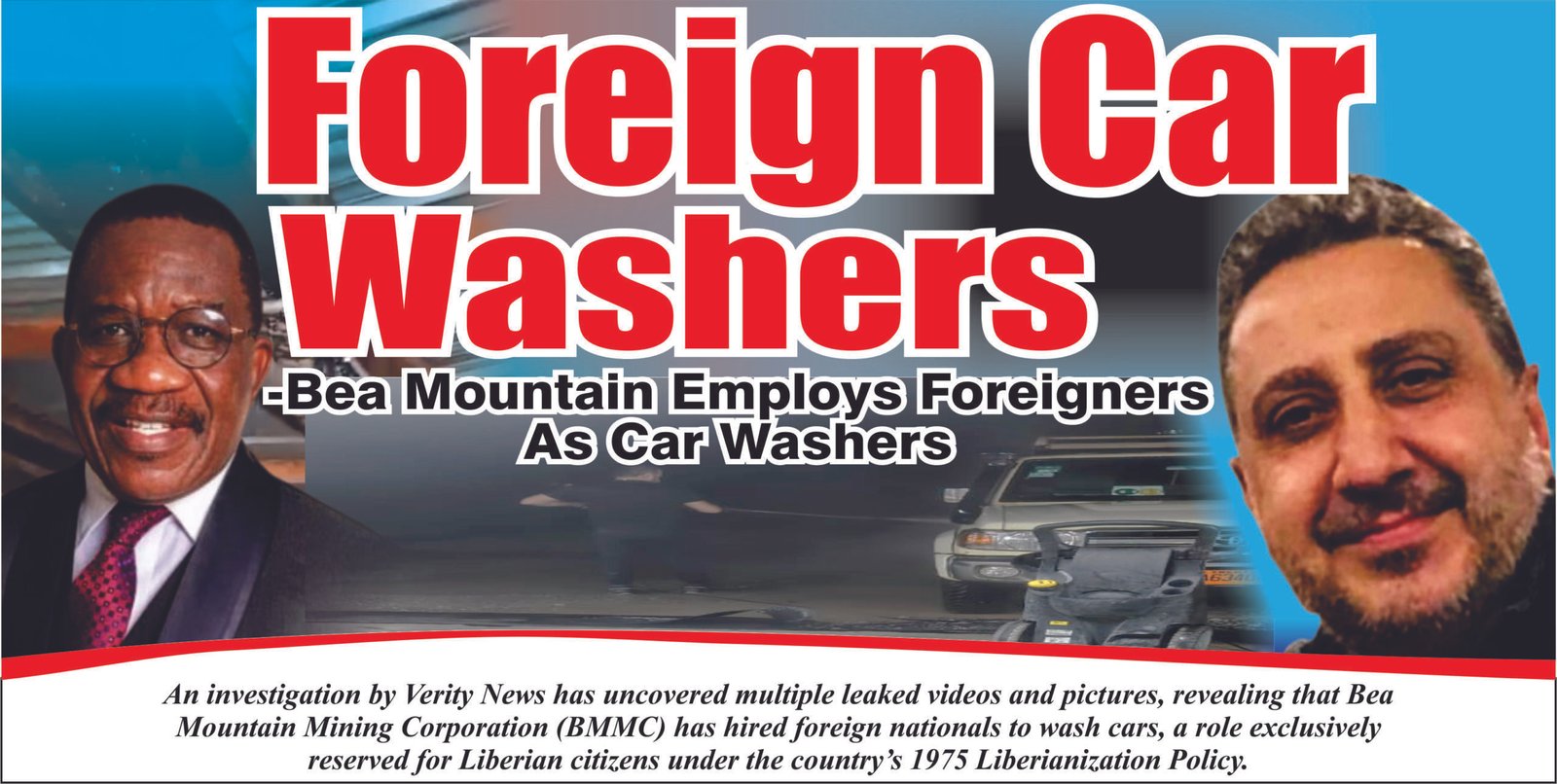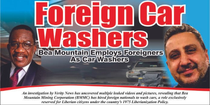 An investigation by Verity News has uncovered multiple leaked videos and pictures, revealing that Bea Mountain Mining Corporation (BMMC) has hired foreign nationals to wash cars, a role exclusively reserved for Liberian citizens under the country’s 1975 Liberianization Policy.
