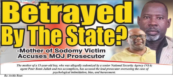 The mother of a 15-year-old boy, who was allegedly sodomized by a senior National Security Agency (NSA) agent Peter Bonn Jallah and two accomplices, has accused the lead prosecutor overseeing the case of psychological intimidation, bias, and harassment.