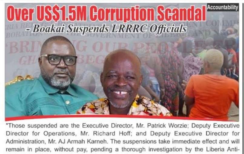 Their suspension is immediate and without pay, as the Liberia Anti-Corruption Commission (LACC) launches a full investigation into their alleged involvement in a fraudulent scheme to embezzle funds intended for the repatriation and resettlement of Liberian returnees from Ghana’s Buduburam Camp.
