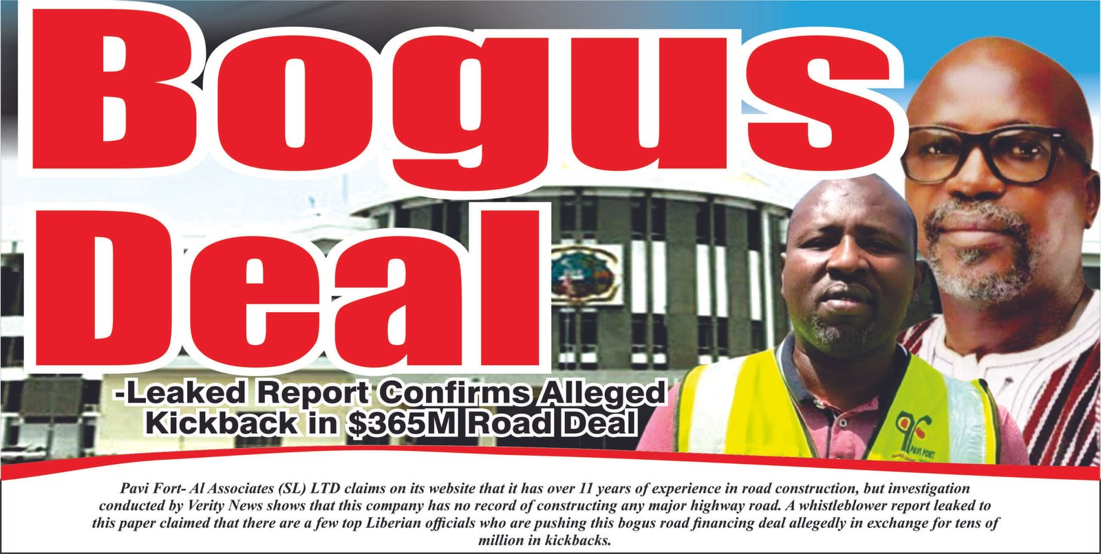 Pavi Fort-Al Associates (SL) LTD claims on its website that it has over 11 years of experience in road construction. However, an investigation by Verity News shows the company has no record of constructing any major highway.