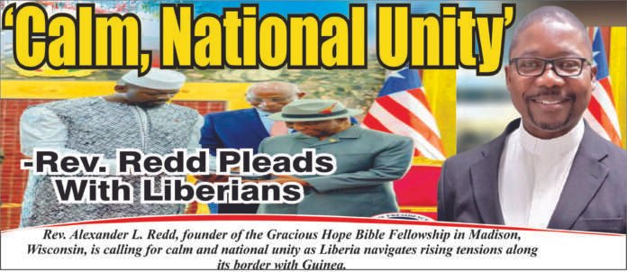 Rev. Alexander L. Redd, founder of the Gracious Hope Bible Fellowship in Madison, Wisconsin, is calling for calm and national unity as Liberia navigates rising tensions along its border with Guinea.