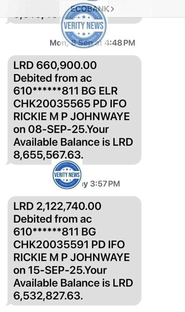 Specifically, check #20035565, dated September 8, released L$660,900 to a certain Moses Johnwaye, while Check #20035591, issued on September 15, transferred an additional L$2,122,740 to the same individual. To date, there is no ongoing university project or expenditure that justifies these transactions.