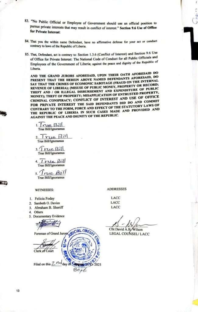 The charges stem from a sweeping investigation by the Liberia Anti-Corruption Commission (LACC), culminating in a formal indictment by the Tenth Judicial Circuit Court on September 2, 2025, against Dr. Podah and several high-ranking officials. The indictment alleges a well-coordinated conspiracy involving:
