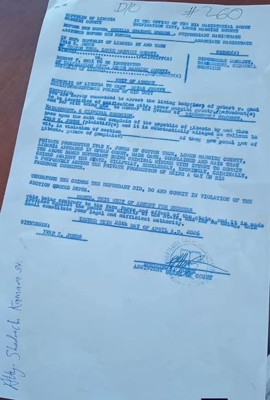 The legal dispute between Margibi County District #2 Representative Ivar Jones and activist Robert Francis Okai has proceeded at the Unification City Magisterial Court, where proceedings on Tuesday, April 28, 2026, resulted in Okai being remanded to the Bondiway Prison Compound in Margibi County.
