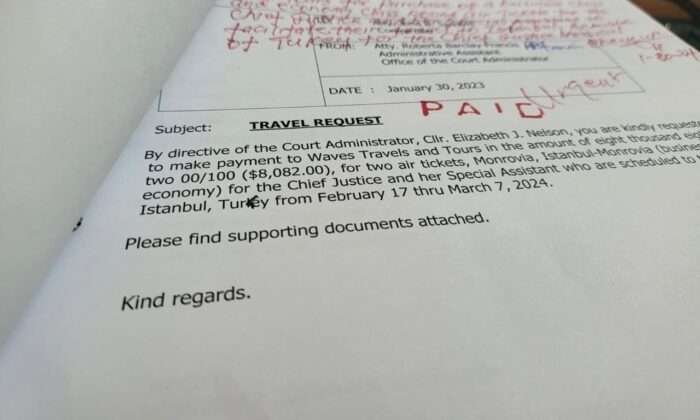 The dossier of financial documents in Verity’s possession shows that a total of US$33,554 was spent just on Daily Subsistence/Incidental Allowance and Air Tickets for Chief Justice Yuoh to seek personal medical check-up in Turkey from Saturday, February 17, 2024, to March 6, 2024. This raises concerns and uneasiness about lavish spending and wastage by senior public officials in Liberia, the World’s 8th poorest country, amid J.F.K. Referral Hospital lacking basic drugs and other medical supplies.