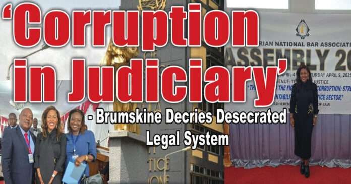 Cllr. Charlyne Brumskine has strongly condemned corruption in Liberia’s legal and political spheres, describing it as desecrating the country’s justice system and governance. While serving as keynote speaker at the Annual National Assembly of the Liberia National Bar Association (LNBA) on Friday, April 4, 2025, at the Temple of Justice in Monrovia, the former vice-presidential candidate of the Collaborating Political Parties (CPP) issued a stern warning that corruption not only damages public trust but also threatens the very foundation of law and democracy.