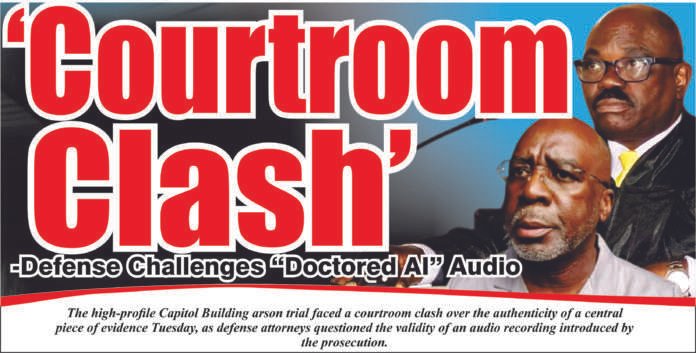 The high-profile Capitol Building arson trial faced a courtroom clash over the authenticity of a central piece of evidence Tuesday, as defense attorneys questioned the validity of an audio recording introduced by the prosecution.