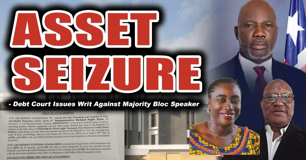 The Montserrado County Debt Court has issued a writ of attachment against Majority Bloc Speaker Richard Nagbe Koon, ordering the seizure of his assets over an unpaid debt of $38,500.