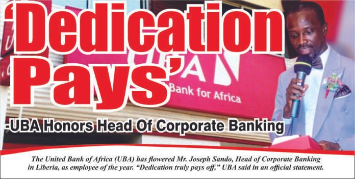 The United Bank for Africa (UBA) has flowered Mr. Joseph Sando, the Head of Corporate Banking, as its Employee of the Year.