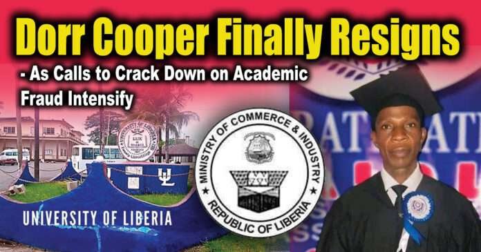 Monrovia, Liberia – At long last, and amid mounting public pressure and sharp condemnations from civil society organizations and activists—most notably exiled Liberian advocate Martin K. N. Kollie-Commerce Inspector General Dorr Cooper has officially resigned following explosive revelations of academic fraud.