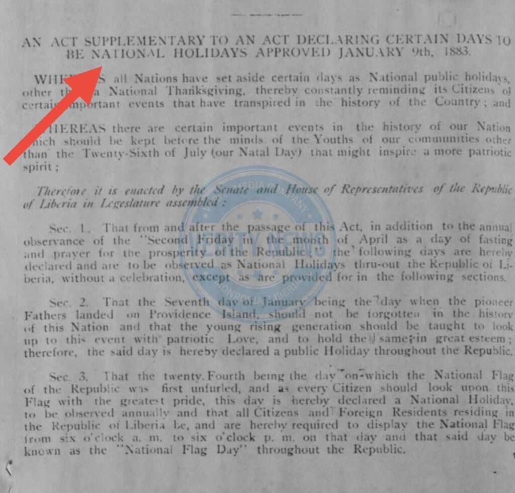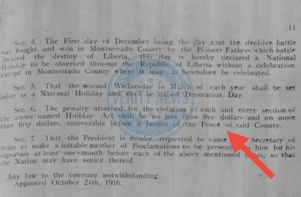 So, we sourced the original Act of the National Legislature that gave birth to Decoration Day as a National Holiday in Liberia, which was approved on October 24, 1916.