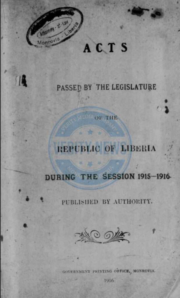 Cornell University Law Library. (2005). Acts passed by the Legislature, Republic of Liberia during the sessions: 1915-16, 1916, 1917-18. Retrieved March 12, 2026.