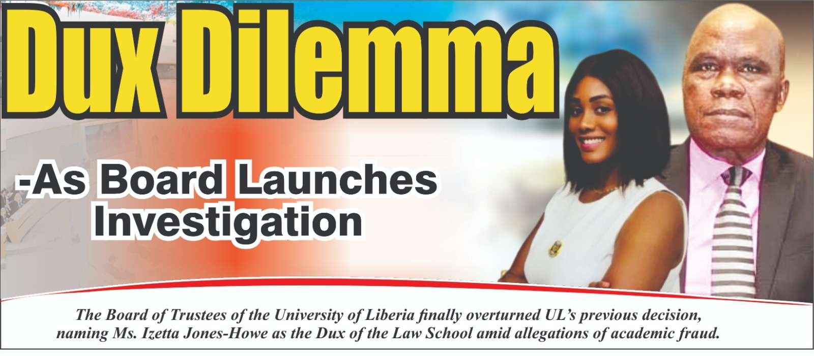 Liberian activist in exile Martin K. N. Kollie had earlier alarmed and challenged the declaration of Ms. Jones-Howe as the Dux, labeling the decision as “an alleged fraud.” Kollie presented pieces of evidence asserting that Jones-Howe was not and cannot be the top performing graduate, disputing the official position of the President of the University of Liberia.