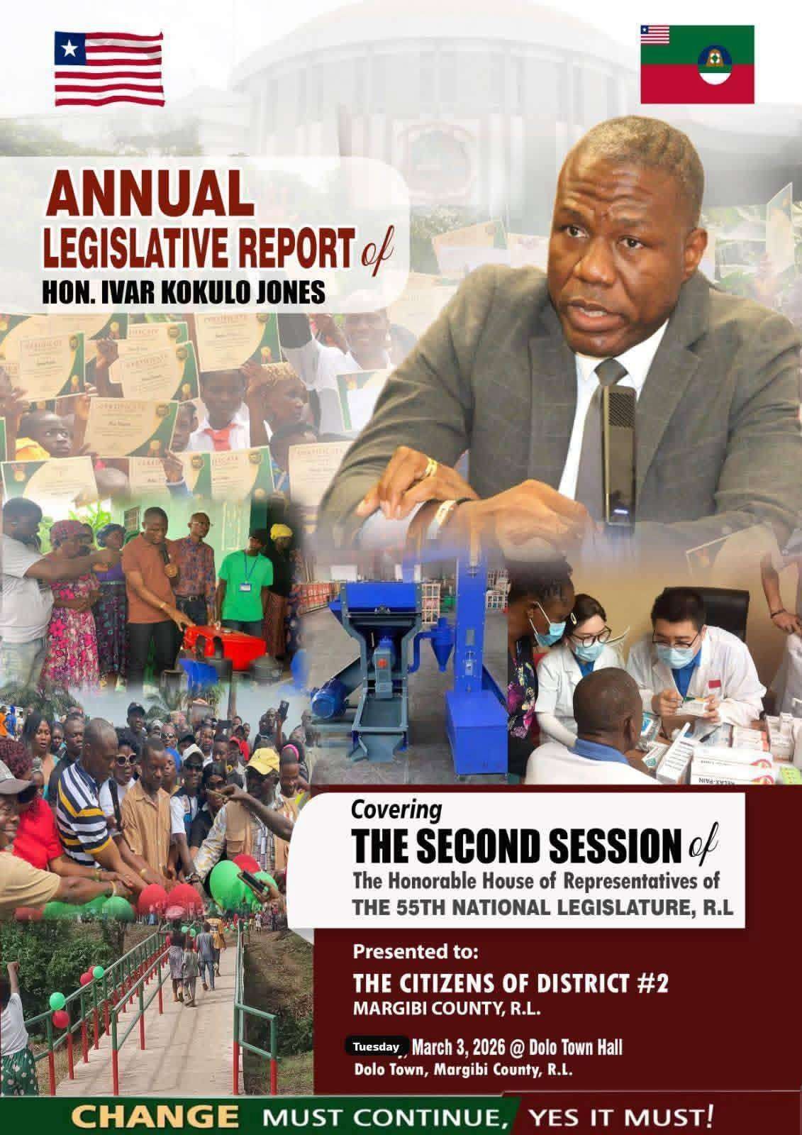 Margibi County — Margibi District #2 Representative, Ivar Jones, on Tuesday presented his second annual legislative report to constituents, outlining activities undertaken during his tenure in the 55th Legislature.