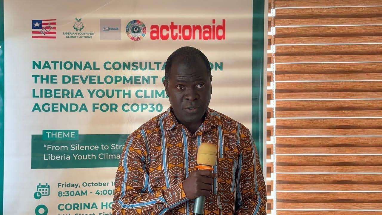 Dr. Yarkpawolo delivered the charge on Friday at the National Consultation on the Liberia Youth Climate Agenda for COP30, held at the Corina Hotel in Monrovia. The forum convened youth leaders, climate advocates, government officials, and development partners to align youth priorities ahead of the 2025 United Nations Climate Change Conference (COP30) in Belém, Brazil. The event was organized by the Federation of Liberian Youth with support from ActionAid and partner organizations.