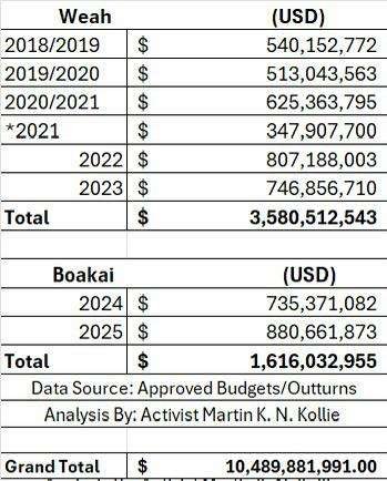 4) Jospeh Nyuma Boakai (FY2024-2025*) – US$1,616,032,955