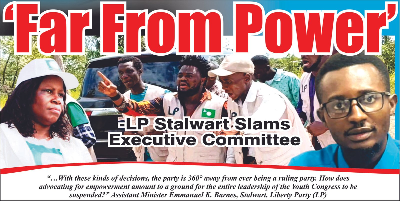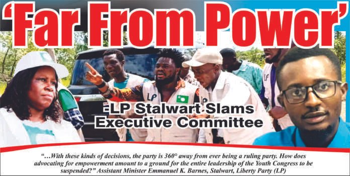 “…With these kinds of decisions, the party is 360° away from ever being a ruling party. How does advocating for empowerment amount to a ground for the entire leadership of the Youth Congress to be suspended, asked Assistant Minister Emmanuel K. Barnes, Stalwart, Liberty Party (LP)?”