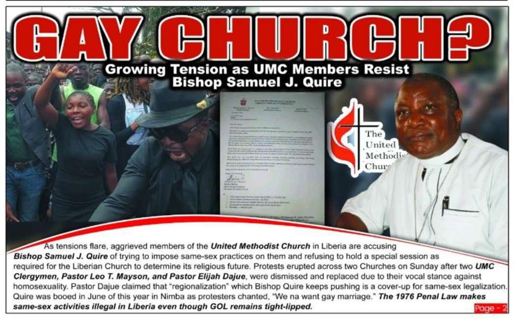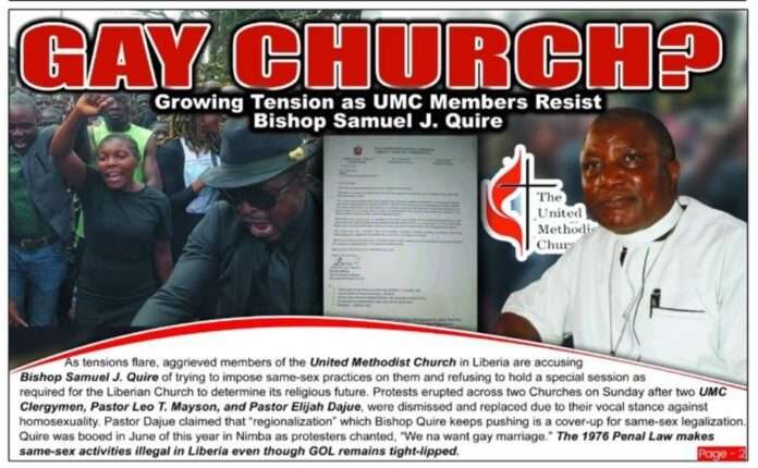 As tensions flare, aggrieved members of the United Methodist Church in Liberia are accusing Bishop Samuel J. Quire of trying to impose same-sex practices on them and refusing to hold a special session as required for the Liberian Church to determine its religious future.
