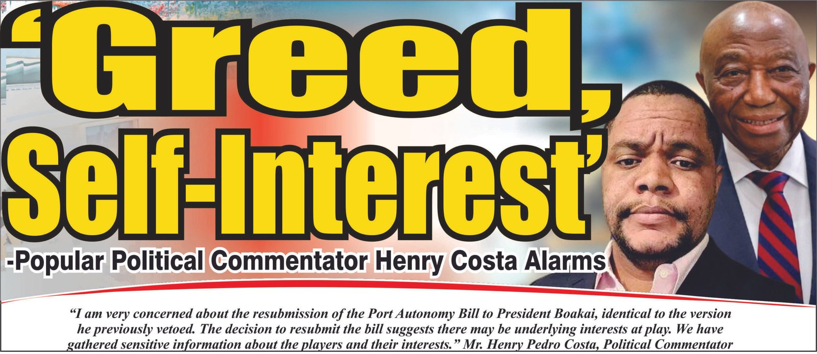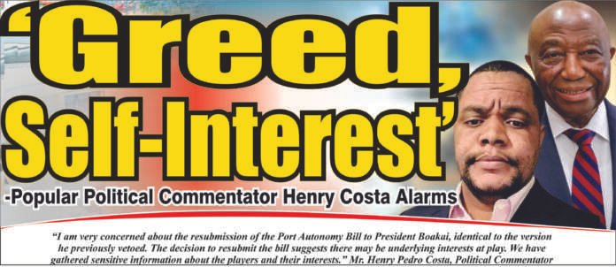 The resubmission of the Port Autonomy Bill to President Joseph N. Boakai has reignited national debate, with prominent political commentator Henry P. Costa sounding a sharp alarm over what he describes as “greed and self-interest” driving the process.