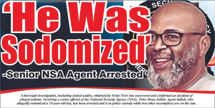 A thorough investigation, including leaked audios, obtained by Verity News has uncovered and confirmed an incident of alleged sodomy involving a senior official of the National Security Agency (NSA), Peter Bonn Jallah. Agent Jallah, who allegedly sodomized a 15-year-old boy, has been arrested and is in police custody while two other accomplices are on the run.