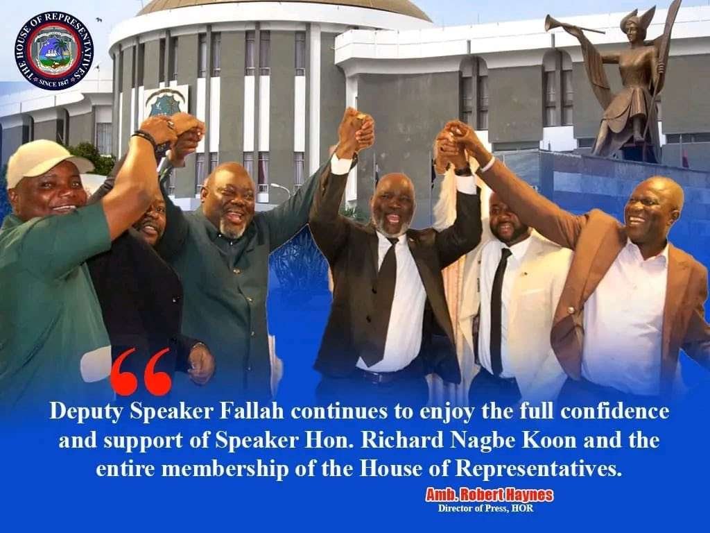 In a statement issued Monday, the Director of Press at the House of Representatives, Robert Haynes, said Deputy Speaker Fallah continues to enjoy the full confidence and support of Speaker Hon. Richard Nagbe Koon and the entire membership of the 55th Legislature.