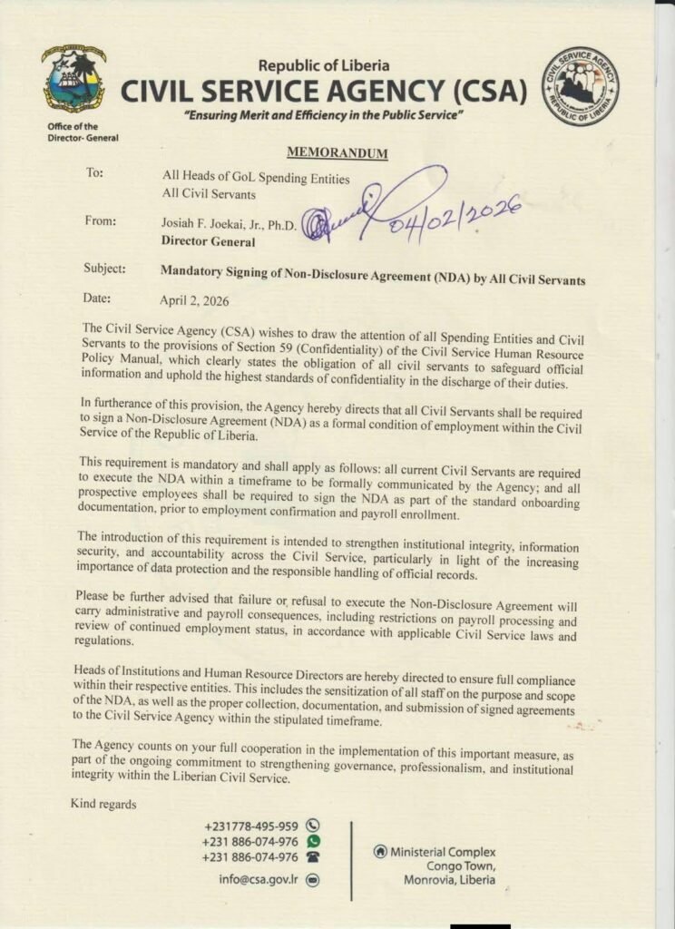 The Independent Information Commission (IIC) has cautioned public institutions against the misuse of Non-Disclosure Agreements (NDAs), stressing that such arrangements must not undermine Liberia’s Freedom of Information (FOI) Act.