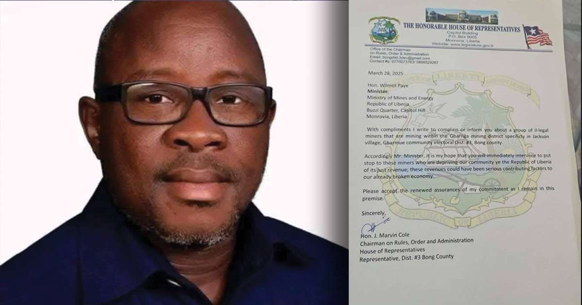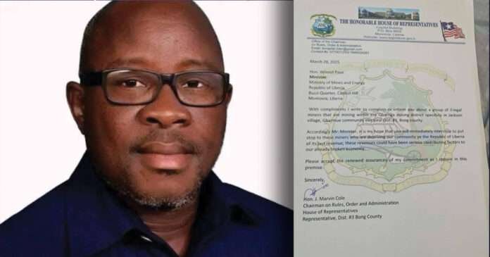 Monrovia, Liberia- Bong County Electrical District #3 Representative J. Marvin Cole has raised alarm over what he described as illegal mining operations taking place in the Jackson Village area of the Gbarmue community, Electoral District #3 in Bong County.