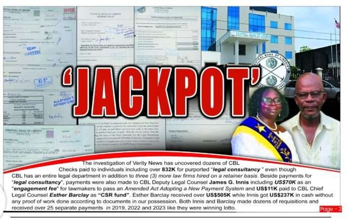 The memo which came from James Innis was sent to CBL suspended Executive Governor Aloysius Tarlue and approved by Deputy Governor for Operations Nyemadi D. Pearson. The CBL memo has further exposed the Legislature of allegedly receiving “bribes” or “kickbacks” before passing legislation. Pundits and legal analysts believe that the Liberia Anti-Corruption Commission (LACC) needs to launch an independent investigation into these leaked checks and the extent to which it has exposed the potential mismanagement and misappropriation of public finances.