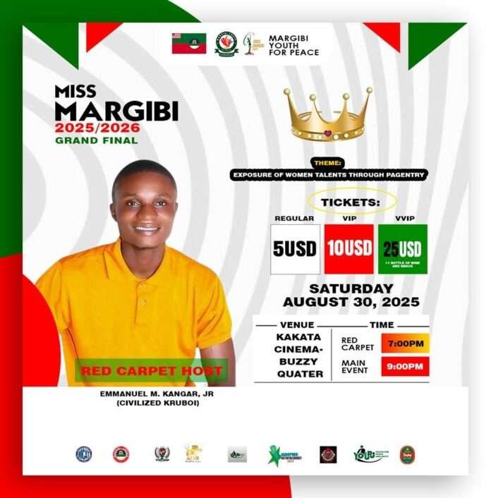 Kakata, Margibi County — In a major boost to local media and entertainment in Margibi County, the organizing committee of the Miss Margibi 2025 Beauty Pageant has officially announced journalist Emmanuel M. Kangar, Jr. as the red carpet host for the pageant’s highly anticipated Grand Finale.