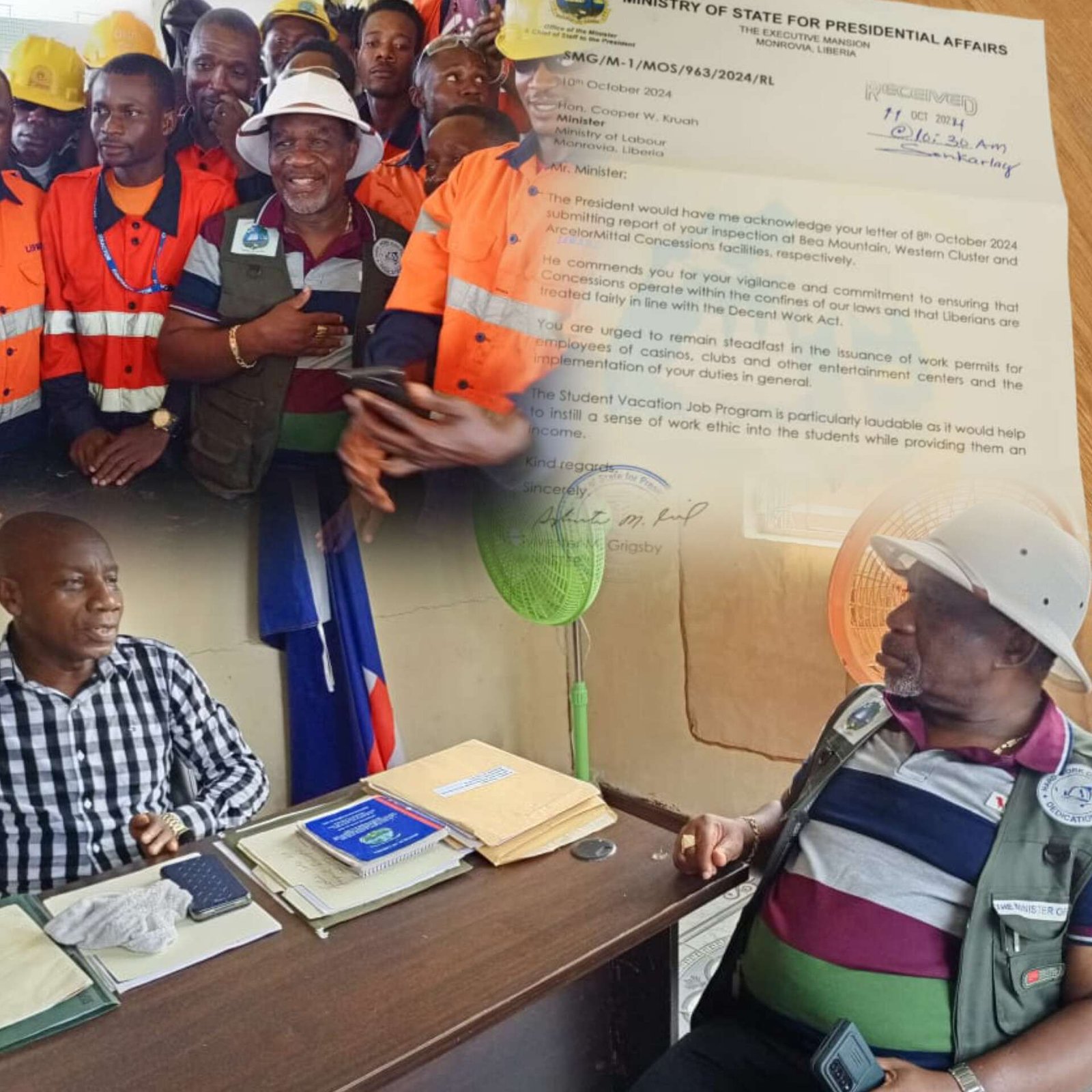 In the communication from the Executive Mansion, addressed to the Minister, it is stated: “The President would have me acknowledge your letter of 8th October 2024 submitting report of your inspection at Bea Mountain, Westem Cluster and ArcelorMittal Concessions facilities, respectively.”