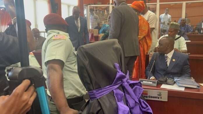 The seat, symbolically draped in black cloth, was removed from the Senate chamber by the Sergeant-at-Arms and ceremoniously handed over to Nimba County’s current senator, Nya D. Twayen. Senator Twayen, who succeeded Jeremiah Koung after his elevation to the vice presidency, received the seat on behalf of the people of Nimba.