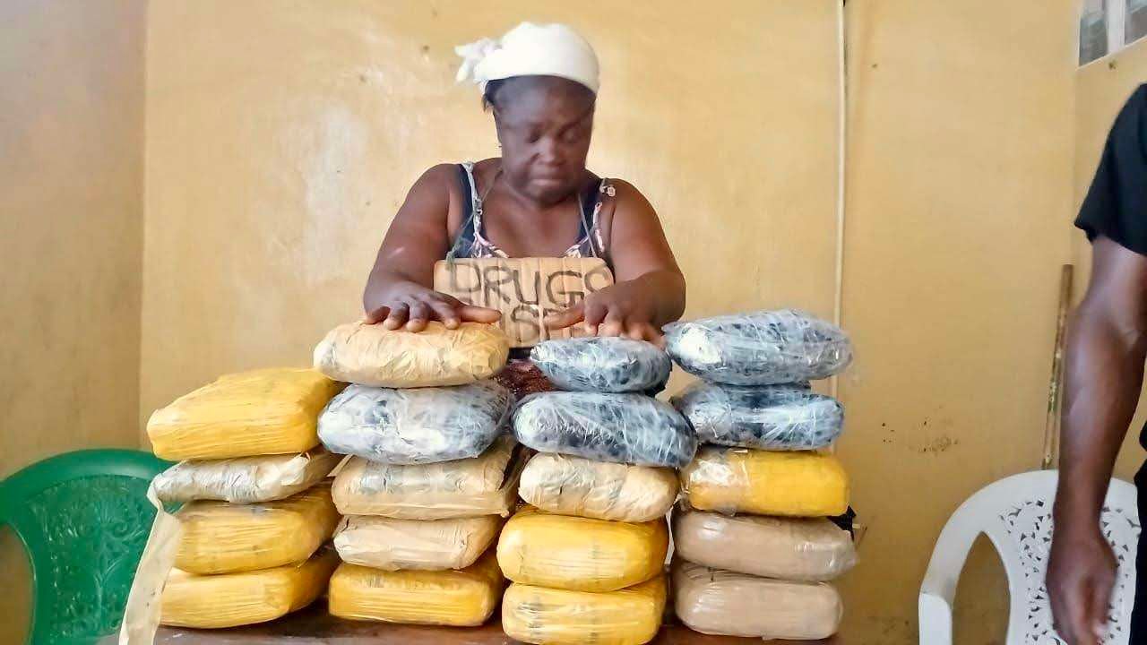 The arrest followed a raid carried out under a search warrant issued by the Robertsport Magisterial Court, which led officers to discover nineteen compressed plates of marijuana hidden in her kitchen.