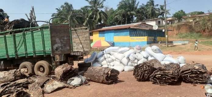 According to Bong County LDEA Commander Thomas Saye, the truck was intercepted and parked on Thursday, January 8, 2026, after officers observed that it was heavily overloaded with large quantities of cow skin and several big bags commonly referred to as “Balawala.”
