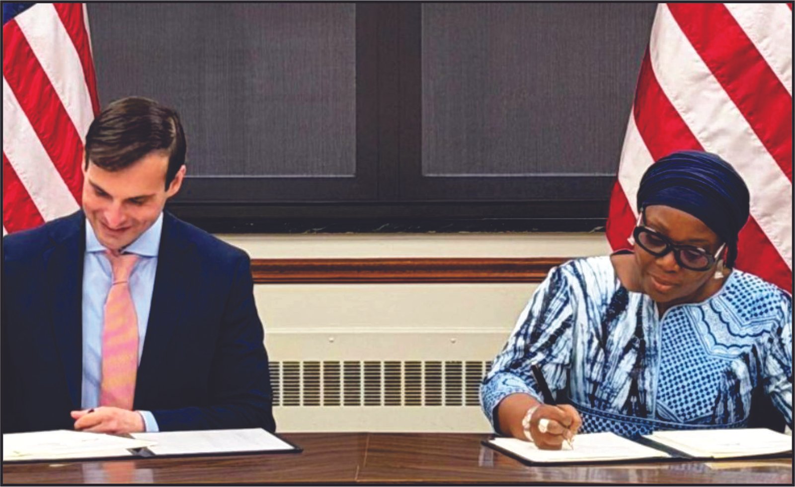 The Government of Liberia, through the Ministry of Foreign Affairs, and the U.S. Department of State formalized the Memorandum of Understanding (MOU) during a signing ceremony in Washington, D.C. Foreign Minister Sara Beysolow Nyanti signed on behalf of Liberia, while Jeremy P. Lewin, U.S. Under Secretary for Foreign Assistance, Humanitarian Affairs, and Religious Freedom, represented the United States.