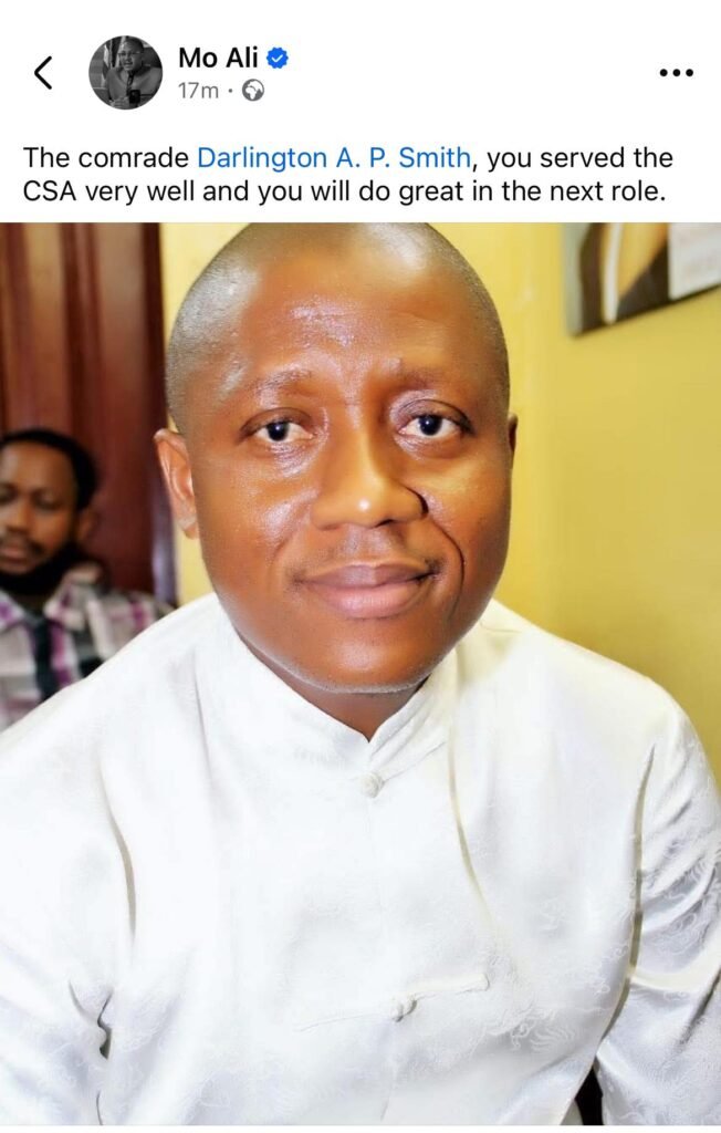 “The comrade Darlington A. P. Smith, you served the CSA very well and you will do great in the next role.” Mr. Mo Ali, Managing Director, LWSC