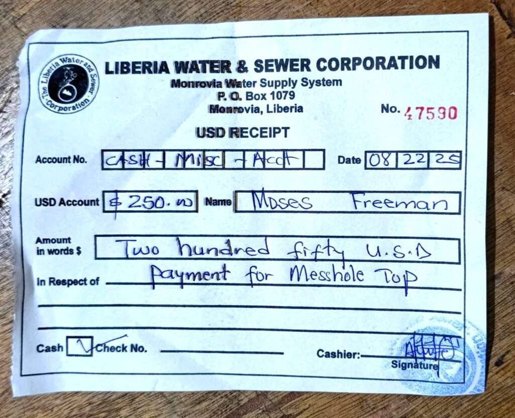 On Friday, August 22, 2025, both Mr. Kolleh and Mr. Dassen, through the LNP, made a cash payment of USD 250 to LWSC, for the stolen manhole cover, after which Mr. Kolleh was released.