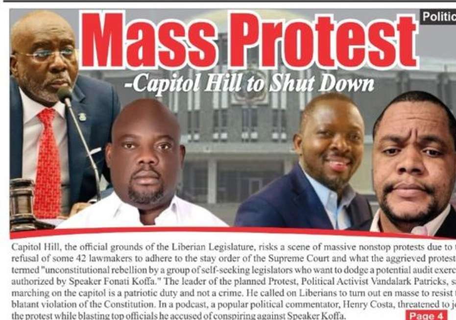 The leader of the planned Protest, Political Activist Vandalark Patricks, said marching on the Capitol is a patriotic duty, not a crime. He called on Liberians to turn out en masse to resist the blatant violation of the Constitution. In a podcast, a popular political commentator, Henry Costa, threatened to join the protest while blasting top officials he accused of conspiring against Speaker Koffa.