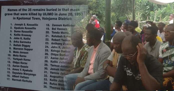 In a solemn and emotional ceremony, the Independent National Commission on Human Rights (INCHR), in collaboration with the United Nations Development Programme (UNDP), officially dedicated the massacre grave in Kpotomai Town, Voinjama District, Lofa County.
