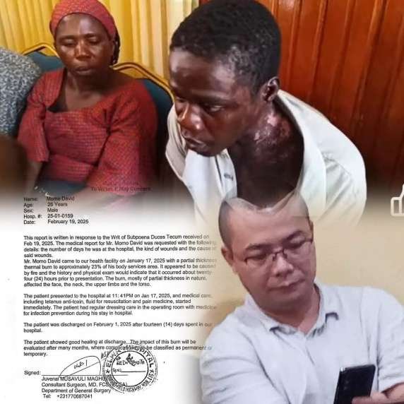 On February 19, 2025, the Monrovia City Court received the official medical report from ELWA Hospital after issuing a writ of subpoena duces tecum. The report, signed by Dr. Juvenal Musavuli Maghuta, Consultant Surgeon, challenges earlier allegations that David was tortured with hot oil by Shio on January 13, 2025.