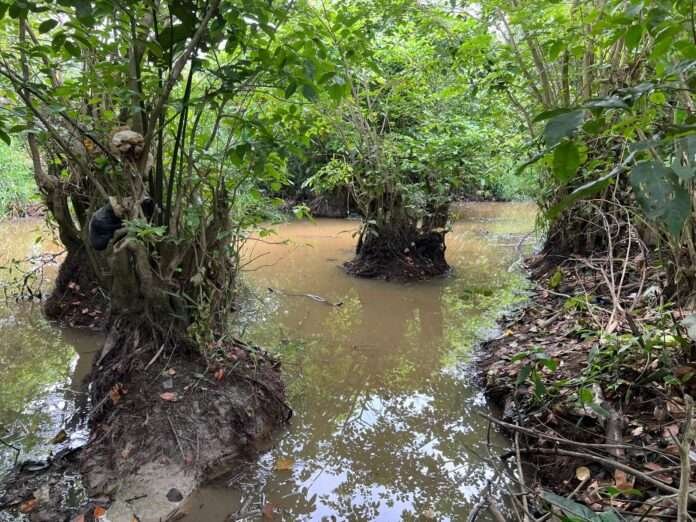 “This is our daily life,” said Mary Johnson, a market woman who uses the route every morning. “This road is our only way out. When the water comes, we have no choice but to walk in it. Our children pass here barefoot. We get sick, and nobody seems to care.”