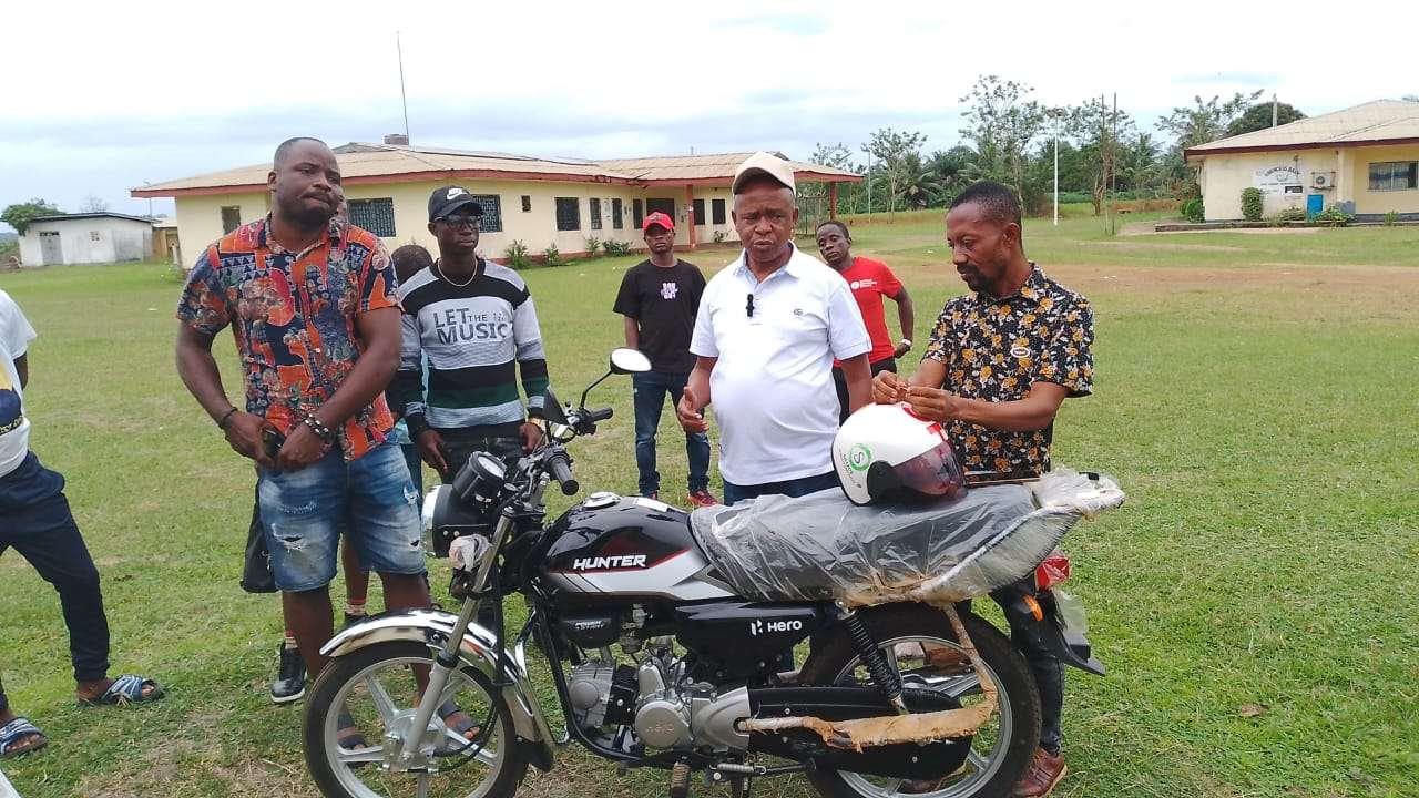 Receiving the motorbike, Rivercess County NIR Center Coordinator Isaac Toe thanked the NIR leadership and President Boakai for their continued support.
