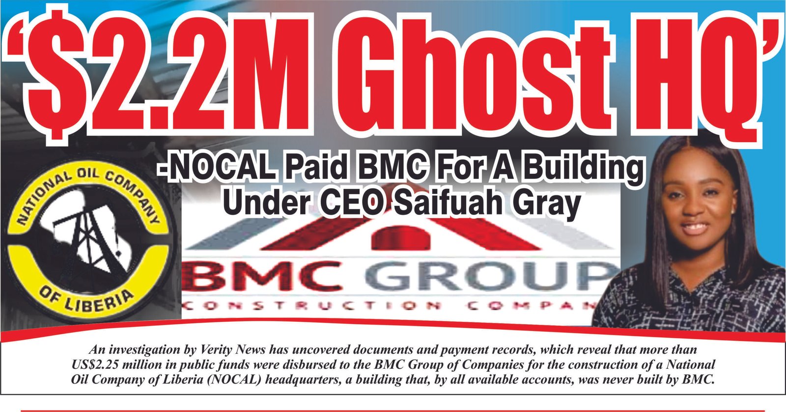 An investigation by Verity News has uncovered documents and payment records, which reveal that more than US$2.25 million in public funds were disbursed to the BMC Group of Companies for the construction of a National Oil Company of Liberia (NOCAL) headquarters, a building that, by all available accounts, was never built by BMC.