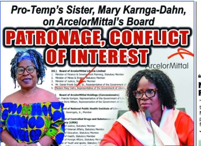 A thorough investigation conducted by Verity News has uncovered that the elder sister of Senate Pro-Tempore Nyonblee Karnga-Lawrence has been appointed a board member of Liberia’s largest foreign investment company even though Pro-Temp Karnga-Lawrence should be exercising oversight and ratifying amended Mineral Development Agreements of this private company.