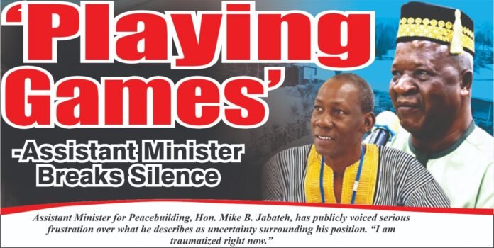 Assistant Minister for Peace-building, Hon. Mike B. Jabateh, has publicly voiced serious frustration over what he describes as uncertainty surrounding his position. “I am traumatized right now.”