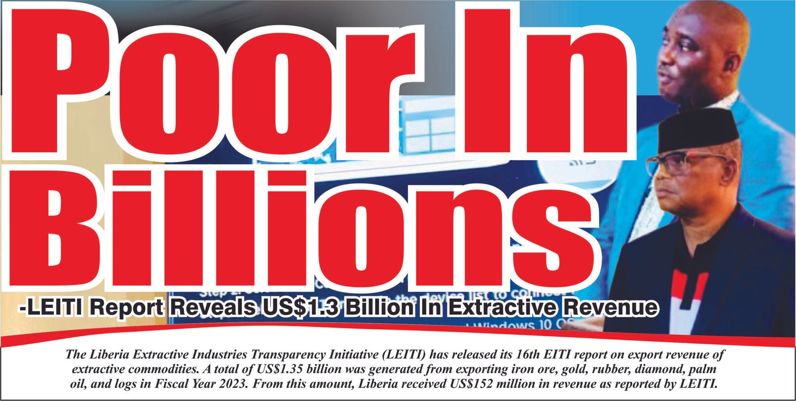 The Liberia Extractive Industries Transparency Initiative (LEITI) has released its 16th EITI report on export revenue of extractive commodities. A total of US$1.35 billion was generated from exporting iron ore, gold, rubber, diamond, palm oil, and logs in Fiscal Year 2023. From this amount, Liberia received US$152 million in revenue as reported by LEITI.