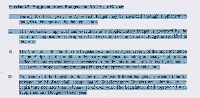 Section 23 of the 2009 PFM Law as Amended and Restated in 2019 and approved October 22, 2019: Supplementary Budgets and Mid-Year Review